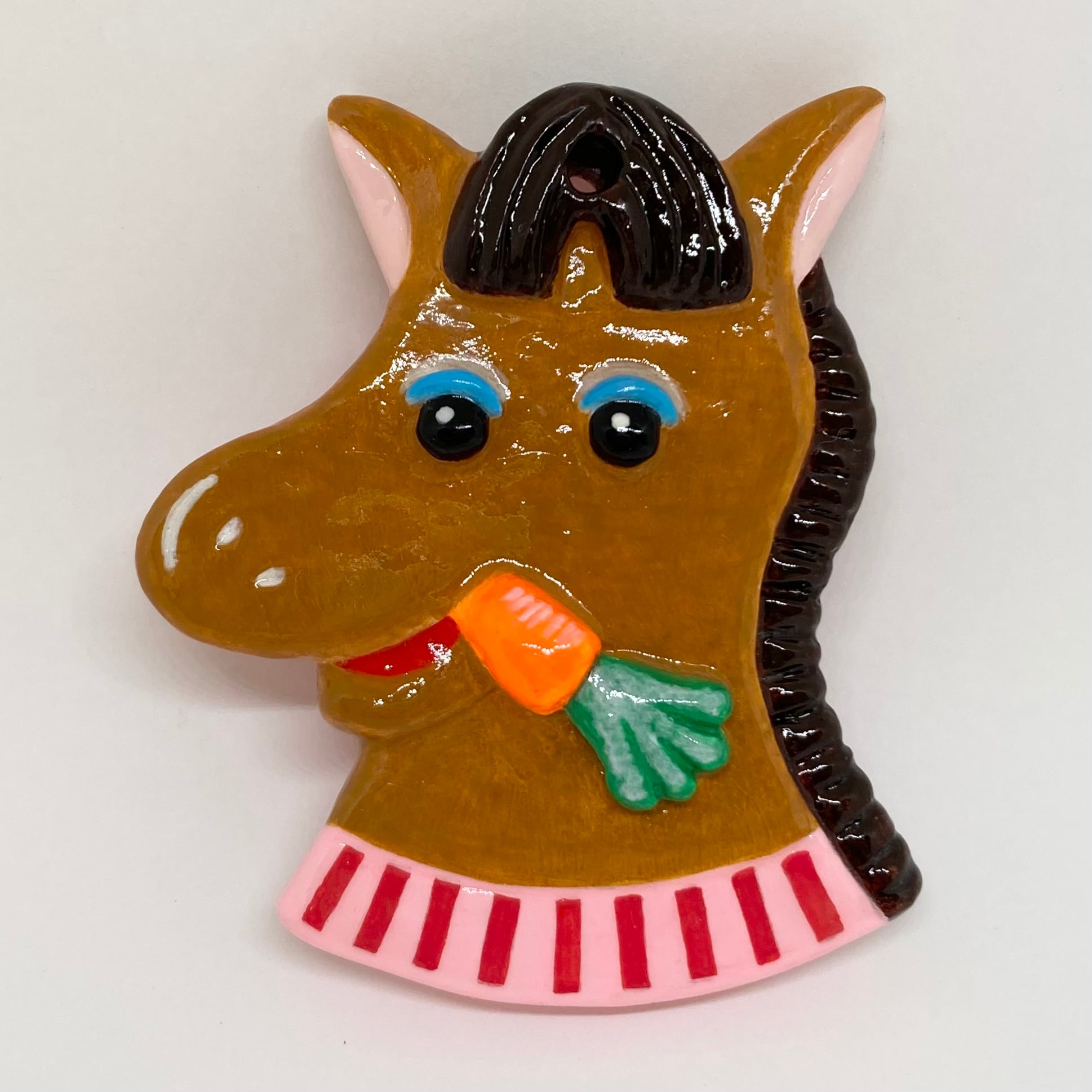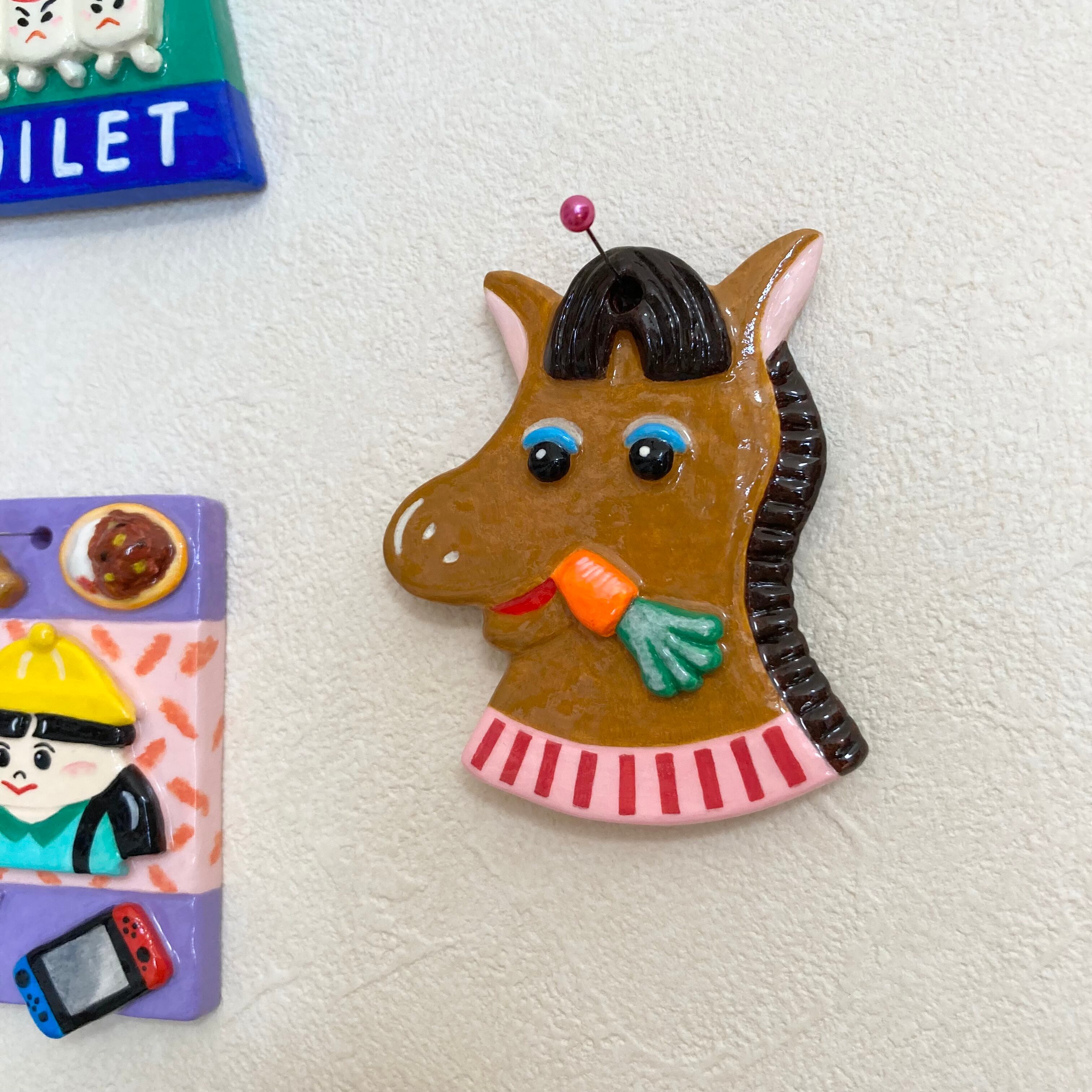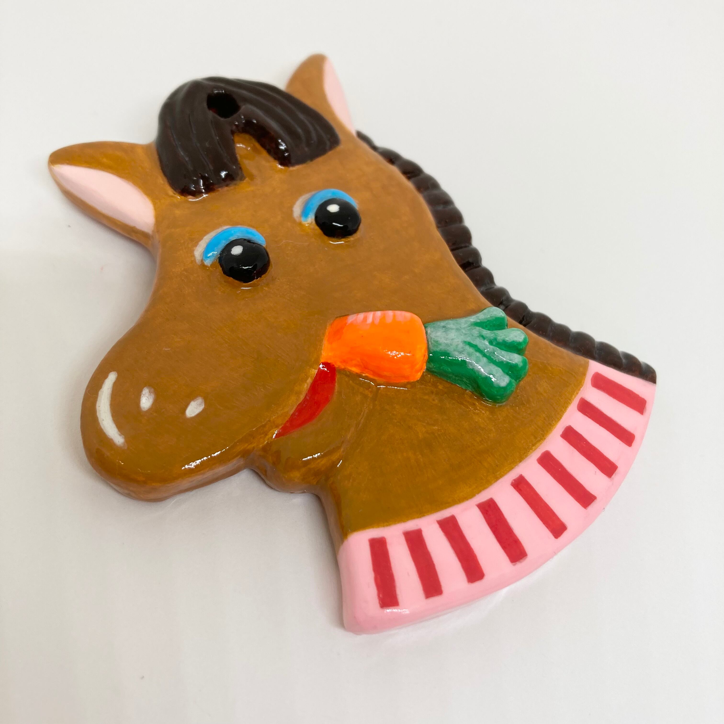 近所に出かけるときも常に持っていきます。にんじん大好き馬ちゃん。壁掛け作品です。